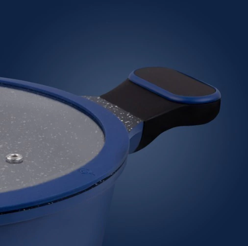 O azul intenso, combinado ao revestimento antiaderente cerâmico, garante uma distribuição de calor impecável, permitindo o preparo de receitas mais saudáveis, com menos óleo. Fabricada em alumínio fundido, cada peça é sinônimo de resistência e durabilidade.