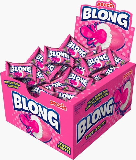 Chicle com casquinha crocante e recheado sabor Tutti-Frutti.