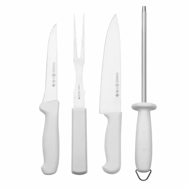 As lâminas são de aço inoxidável de alta qualidade, com polimento e afiação profissional.