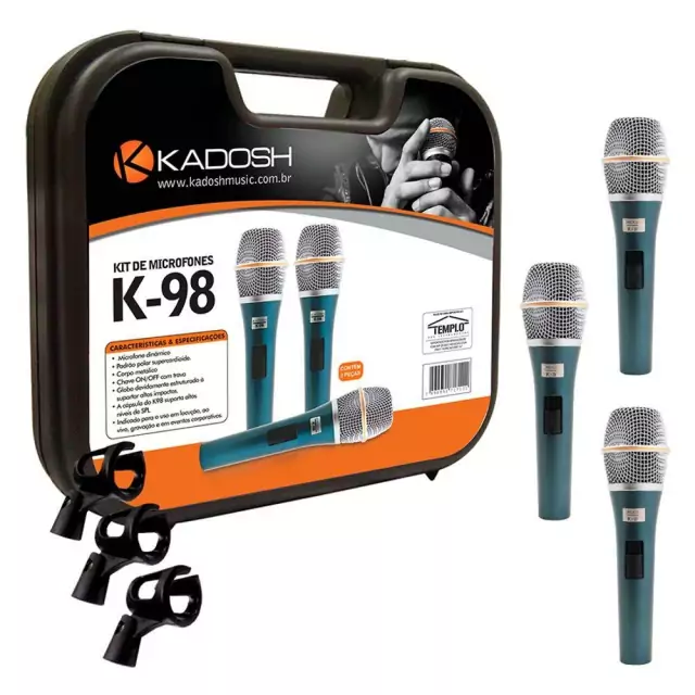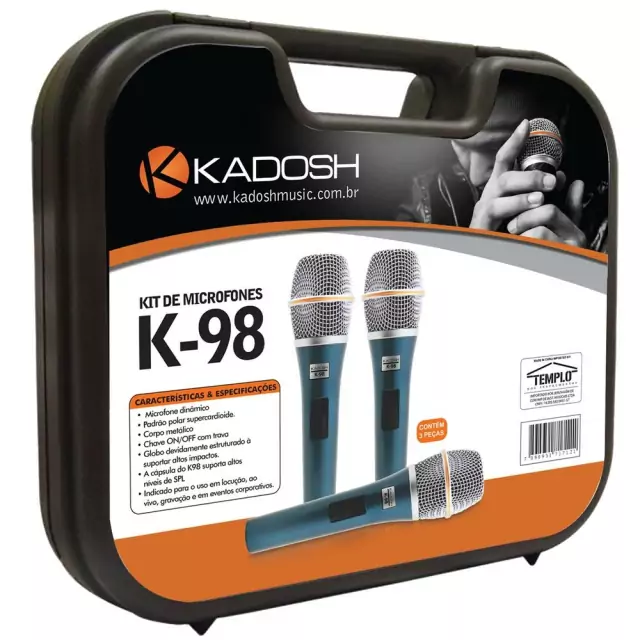 Kit 3 Microfone Kadosh K98 Com Cachimbo e Case