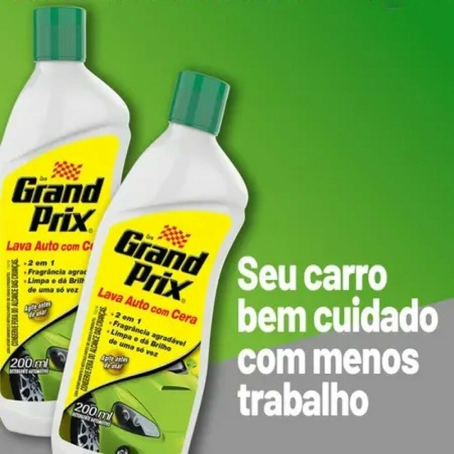 Grand Prix Lava Auto com Cera é uma solução prática para limpar e dar brilho de uma vez só.