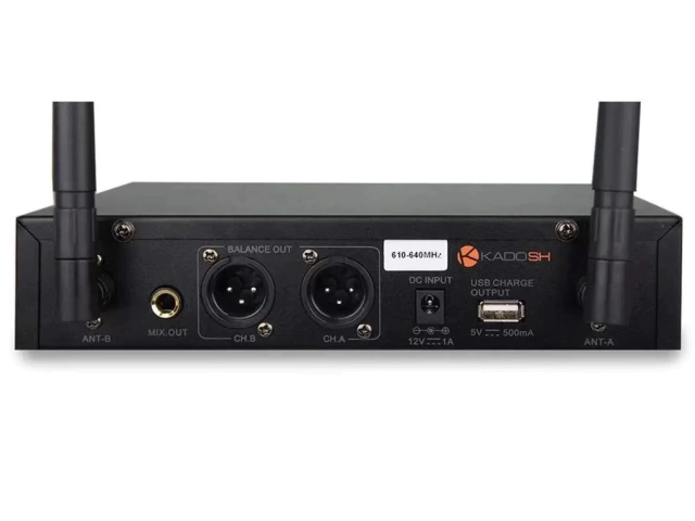 O K-502M possui 2 saídas XLR balanceadas e uma saída mix P10 1⁄4” TRS, 2 antenas fixas, sendo 1 para cada canal/microfone com capacidade de alcance de 50 metros, podendo variar de acordo com o local que será instalado.