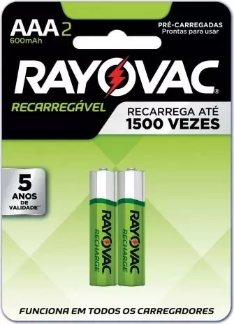 Elas duram até 3x mais por carga do que as alcalinas e podem ser recarregadas até 1.500* vezes. É a opção ideal para equipamentos com alto consumo de energia e uso recorrente. Uma recarregável Rayovac equivale a 1500 pilhas alcalinas.