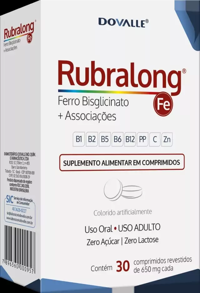 Rubralong um suplemento alimentar à base de Ferro, com alta absorção, associado a 8 micronutrientes fundamentais ao organismo.